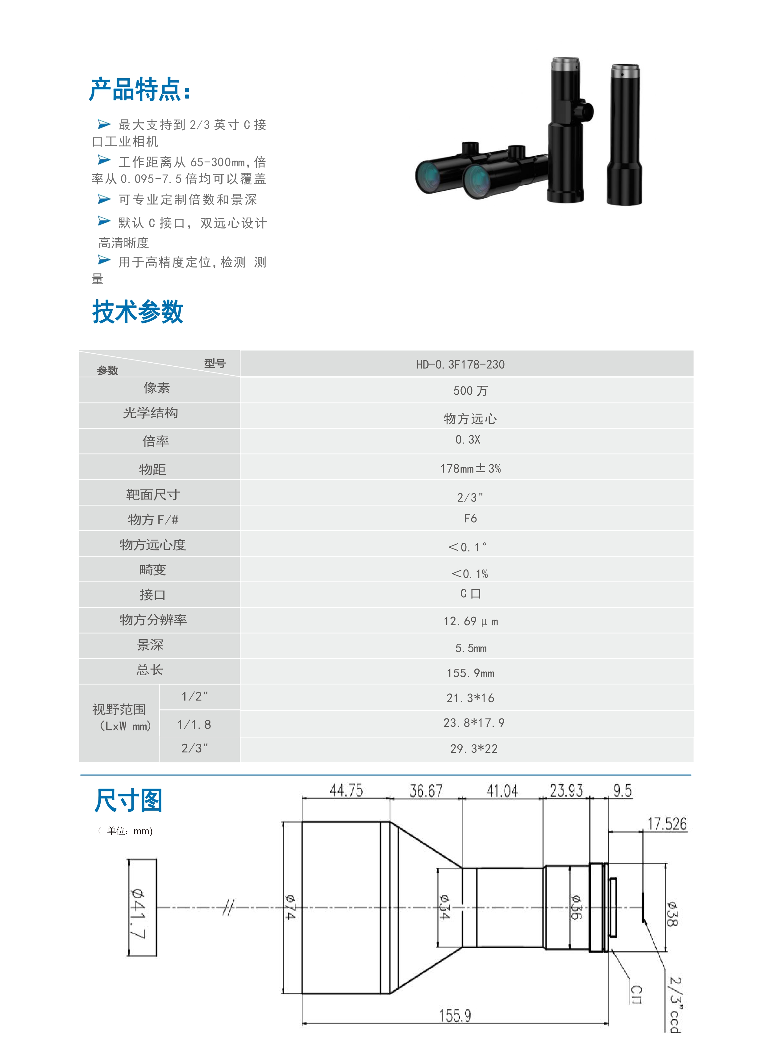 默认C接口,双远心设计 高清晰度